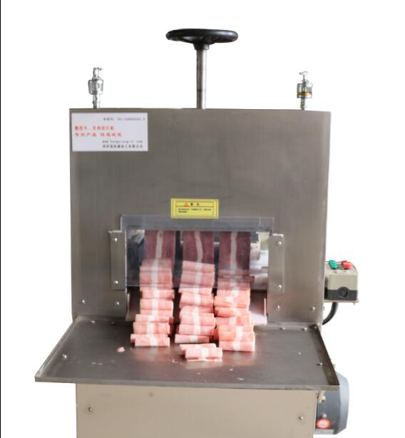 鴻祥瑞數(shù)控切片機HXR-S3型一次可以切3卷(板)羊肉或肥牛,鴻祥瑞數(shù)控切片機采用西門子PLC控制,步進電機傳動,徹底解決了機械切片機故障率高的難題,真正意義上實現(xiàn)了全自動化。紅外線感應(yīng)安全防護裝置(選裝),公司通過市場調(diào)研,特研發(fā)一次性刀具,解決部分客戶磨刀難的問題。雙導(dǎo)向推進器,自動進退,起刀高度18CM,可以立著切肥牛板,調(diào)整厚薄不用停機,可根據(jù)所需要的厚度在數(shù)控開關(guān)自動加減,每小時可切肉100-150公斤,工作臺采用食品專用有機塑料板制成,保證食品安全、衛(wèi)生,肉卷無需解凍,可直接上機操作,并可切出多種卷形(粗卷、細卷、長卷),成形整齊、美觀,并成排列狀,容易包裝,加工效率高、安全、節(jié)省人工。是大型火鍋店、大中型牛羊肉批發(fā)商的理想選擇。